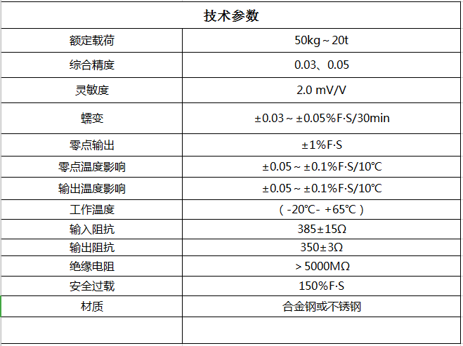 用途與特點(diǎn)具有良好的密封結(jié)構(gòu),通用性強(qiáng)。一端固定、一端加載,傳力形式多樣。適用于汽車衡、電子秤、料斗秤等。可選擇一體化標(biāo)準(zhǔn)信號(hào)輸出,三線制0~5VDC或4~20mA。